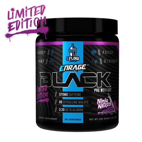 ENRAGE Black is our all-encompassing, clinically dosed, extremely potent, high-intensity, high-stimulant pre-workout formula. ENRAGE BLACK delivers energy you can feel, powerful pumps, muscular endurance, razor sharp mental focus, and peak performance.*